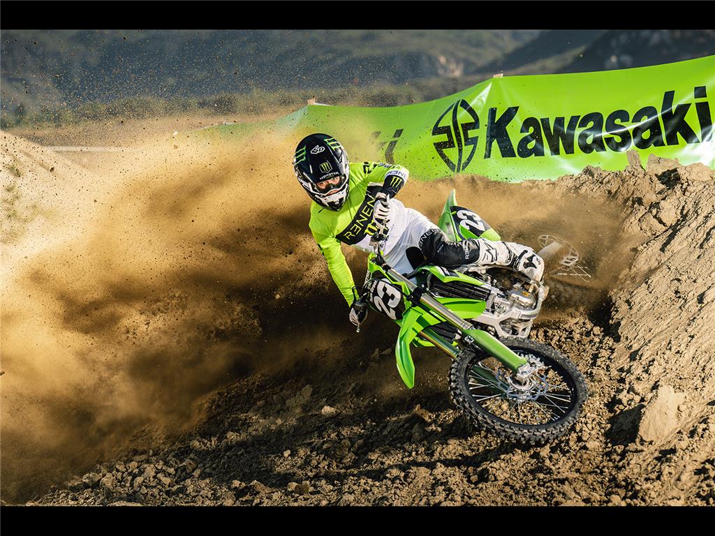 KX450-based frame (an evolution of the current design) and KX450 swingarm offer improved handling and increased rear wheel traction.