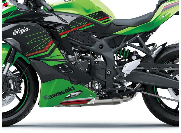 Designed using Kawasaki’s advanced dynamic rigidity analysis, this trellis frame made from high-tensile steel delivers the required balance of strength and chassis flex to achieve the Ninja ZX-4R’s nimble supersport-style handling.