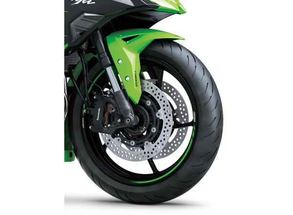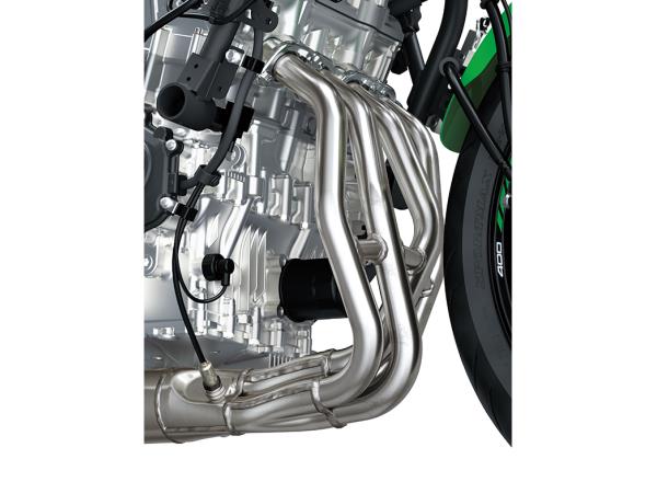 The new 399 cm3 liquid-cooled DOHC In-Line Four engine pushes technological boundaries to comfortably top the 400cc class*. Developed with know-how gained from other Ninja ZX models, the high-performance engine offers class-leading power and a rev-range that extends beyond 15,000 min-1.