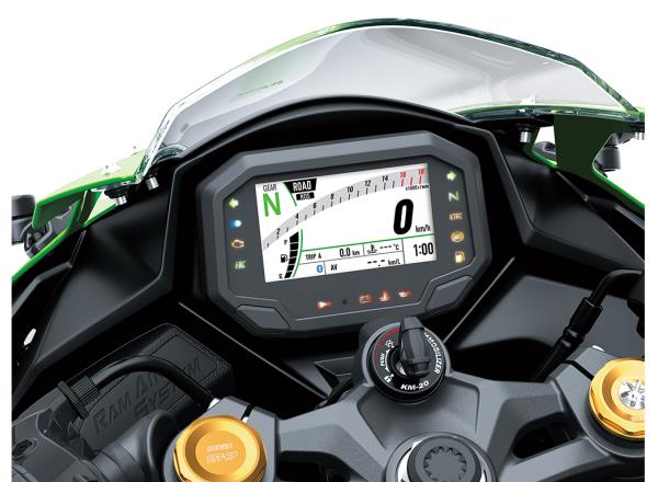 Style meets substance with the Ninja ZX-4R’s high-class styling and high-grade package. Aggressive looks are complemented by premium features like TFT colour instrumentation providing clear information, integrated Riding Modes that link traction control and power modes for easy machine setup, and on the ZX-4RR a quick shifter for fast, simple gear changes.