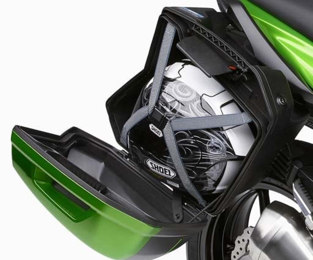 Quick-release 56 litre pannier system that will hold most full-face helmets. Panniers attach to the factory handgrips and give a clean look when removed. Features our One-Key System: the bike ignition key also fits the pannier locks.